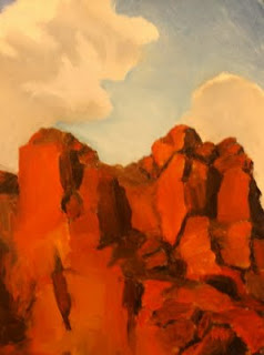 The following are photos of the paintings I created on-site in Santa Fe earlier this month. Instead of bringing my easel to a location to paint like my trips in 2008, I took pictures with my EOS Rebel from multiple locations, and then selected one image from all the photos to then translate into a painting back at my friend Todd's art studio. Sort of a visual art photo safari. This technique allowed me to see more different locations over a 4 day period than the traditional plein air method, and to use oil paints rather than the water-based goauche paint I bring into to the field.
